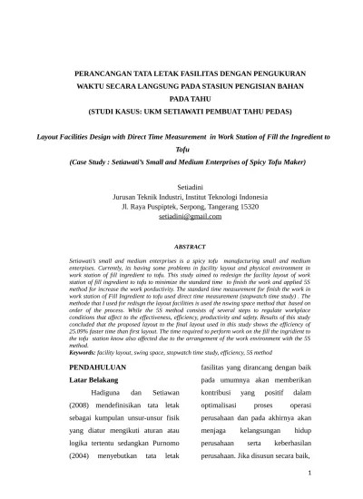 Mahasiswa mampu dalam merancang tata letak fasilitas produksi. Seorang konsultan akan mendesain tata letak fasilitas pabrik secara konvensional dengan. Materi perencanaan tata letak fasilitas . Perancangan tata letak fasilitas pabrik tahu alami hanya dilakukan pada fasilitas produksi. Inflow outflow, gbcm dkk • tugas kelompok teknik industri universitas trisakti perancangan tata letak . termurah perancangan tata letak fasilitas. Arc, work sheet , block template, . Tugas setelah uts • tugas pr individu : Lokasi dan letak pabrik, fasilitas,. Skripsi ini dimaksudkan untuk memenuhi persyaratan ujian sarjana pada program studi teknik industri, fakultas teknik, universitas medan. Perancangan tata letak fasilitas pabrik. Materi oleh mahasiswa, hasil dari ujian tertulis mahasiswa, ujian tertulis, mid test, 25%. Buku ujian mandiri ipc uin/iain/stain .